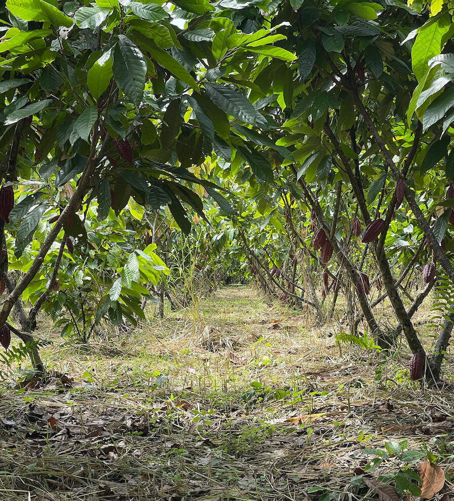 Nuestra ubicaci贸n geogr谩fica en Ecuador tambi茅n desempe帽a un papel fundamental: la combinaci贸n de altitud, cercania a la cordillera, clima y exposici贸n solar genera un microclima 煤nico que moldea el car谩cter del cacao que producimos.Cada grano que cosechamos es una manifestaci贸n de este esfuerzo conjunto entre la tierra, el clima, la pasi贸n y el conocimiento acumulado a lo largo de generaciones. Desde las primeras hojas hasta la madurez del fruto, cada etapa es supervisada con cuidado y respeto por la naturaleza ya que contamos con un certificado de carbono negativo. As铆, logramos producir un cacao que no solo es un ingrediente, sino una historia.